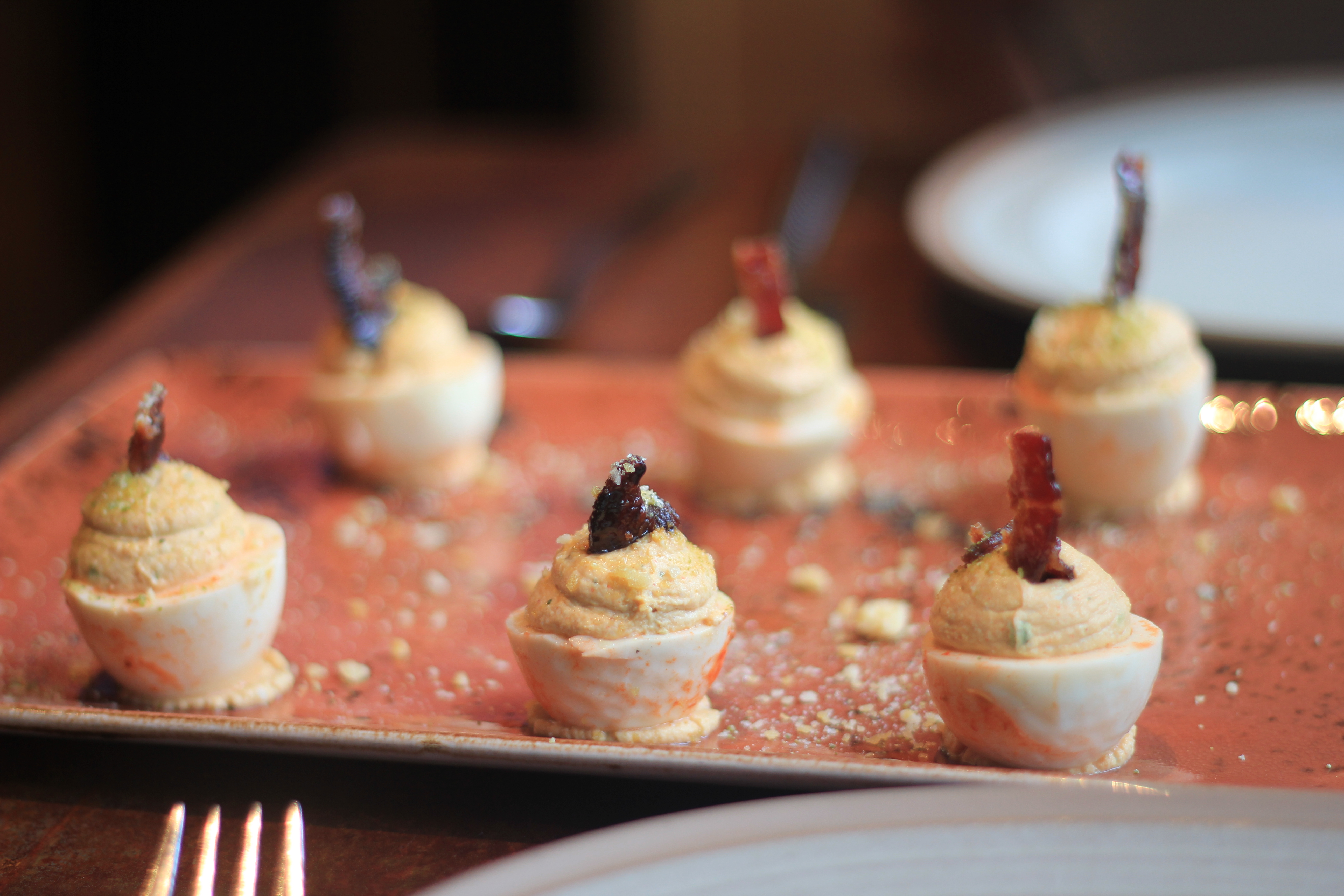 We started off with their pickled and deviled eggs, with tiny bacon strips!