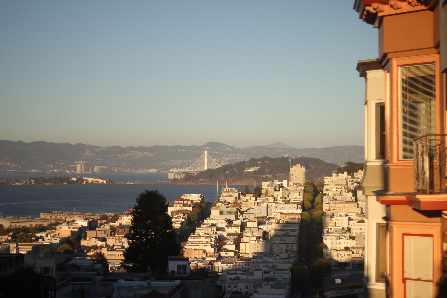 You can sneak a peak at the Bay Bridge.
