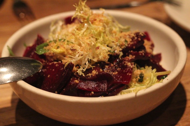 Roasted beets salad: green beans, white anchovy, avocado creme fraiche, bread crumb. They give you a generous amount of beets, which I love.
