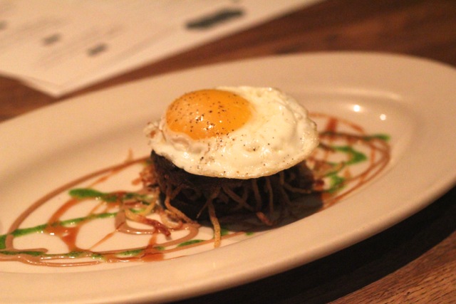 One of my favorite dishes here: wood oven roasted pig face with sunny side egg, tamarind, cilantro, red wine-maple, potato stix. They instruct you to destroy it completely to oblivion…