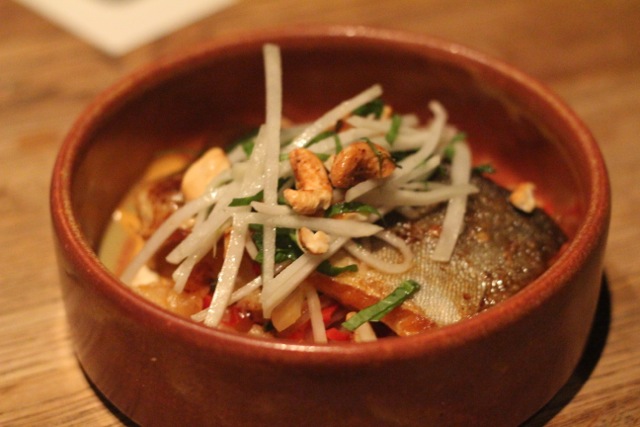 Another one of my faves. Pan roasted arctic char with kohlrabi escabeche, miso-harissa, spiced cashew.