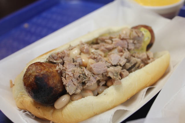 Hot Doug’s Cassoulet: Saucisse de Toulouse with Fresh Herb Mustard, Great Northern Beans and Duck Confit