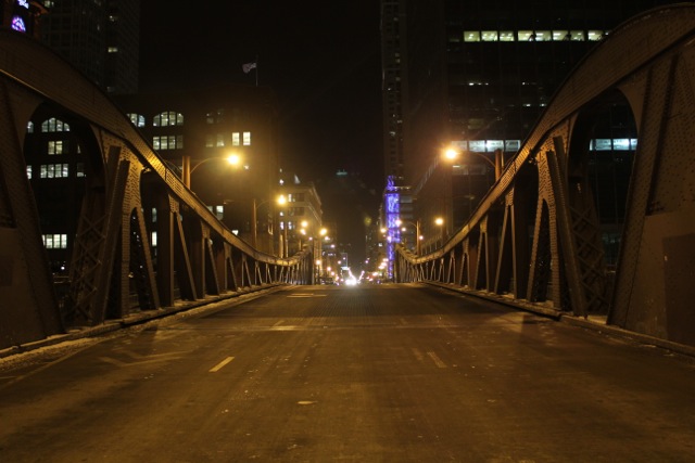 The one thing I love most about Chicago is its architecture. Bridges and lamp posts make this scene memorable for me.