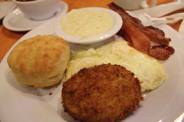 “Southern breakfast” is where it’s at. Eggs your way, bacon, biscuit, grits! Still, for the price you pay, you’re only paying for friendly service and wide booths to sit in.