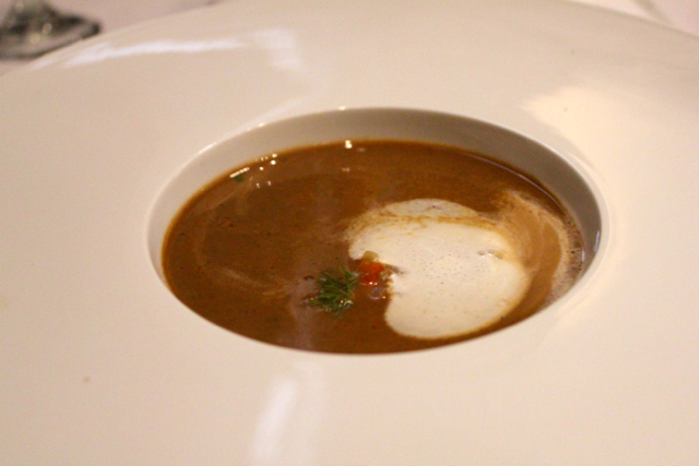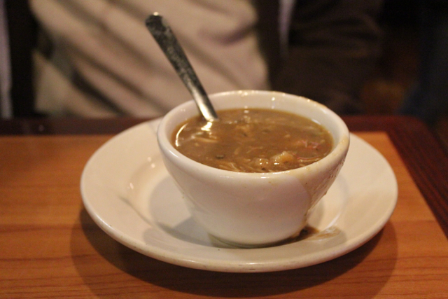 Crawfish bisque was creamy and had 2 little crawfishies swimming in it.