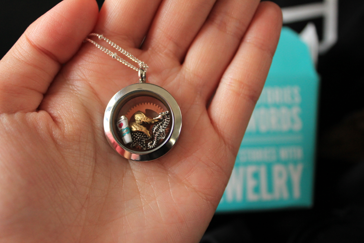 Origami Owl. One of the vendors at the marketplace was selling these necklaces where you can put charms inside.