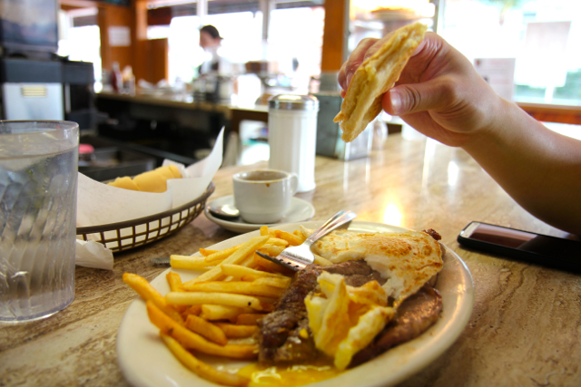 Puerto Sagua. Cuban breakfast. Cafe con leche. Get: