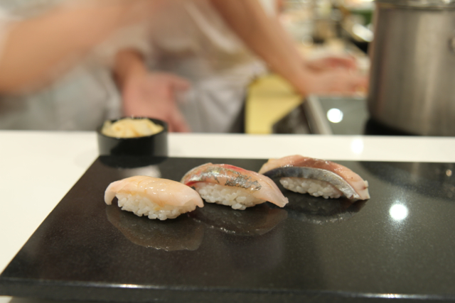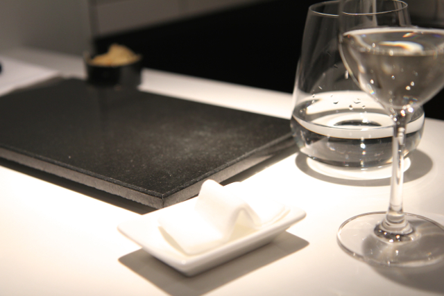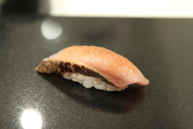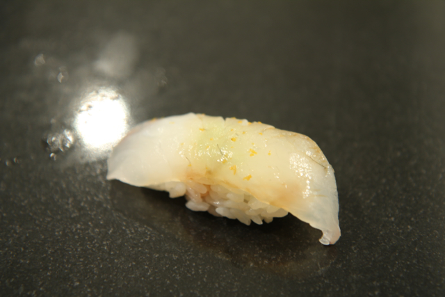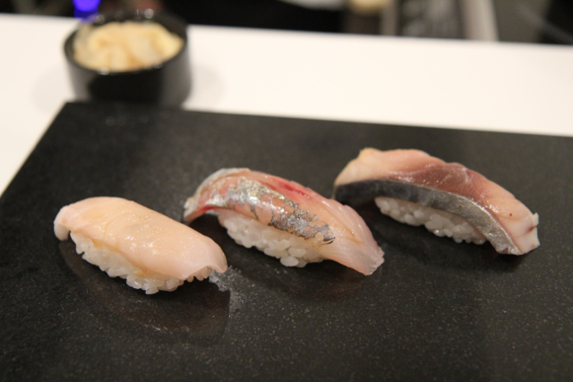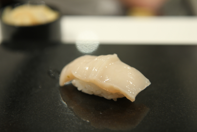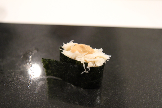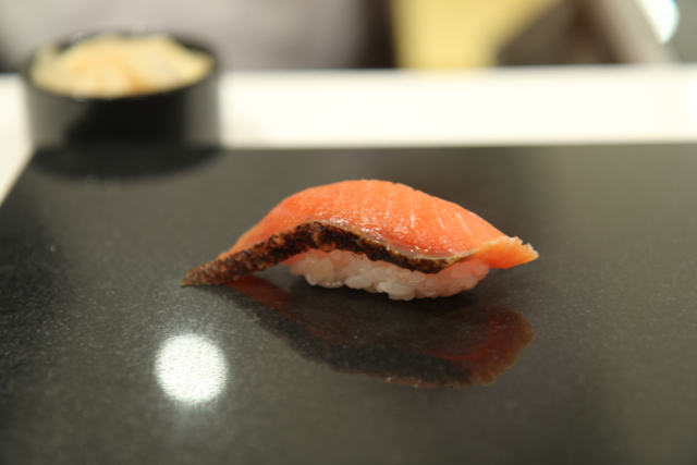 With only a finger towel (for eating with your hands) and a bowl of ginger, your sushi is placed on this black slab. Simplistic. The focus is on the sushi.