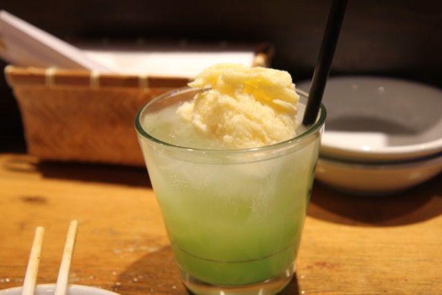 Grownup’s melon soda float. (alcoholic)