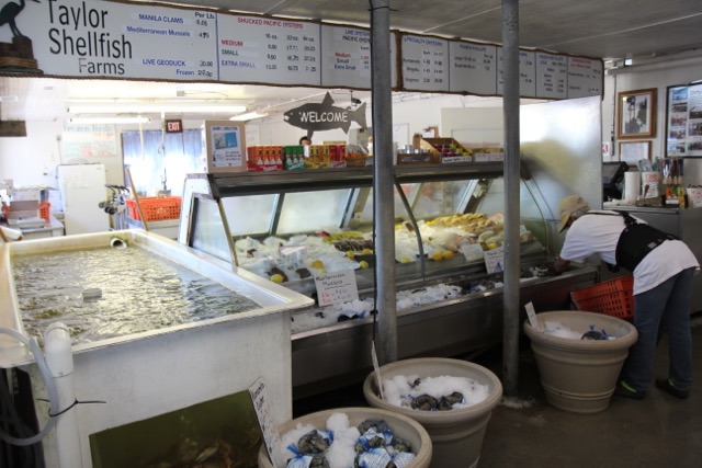 We got to Taylor Shellfish Farms in Bow. Also amazing because you get to shuck your own oysters here.