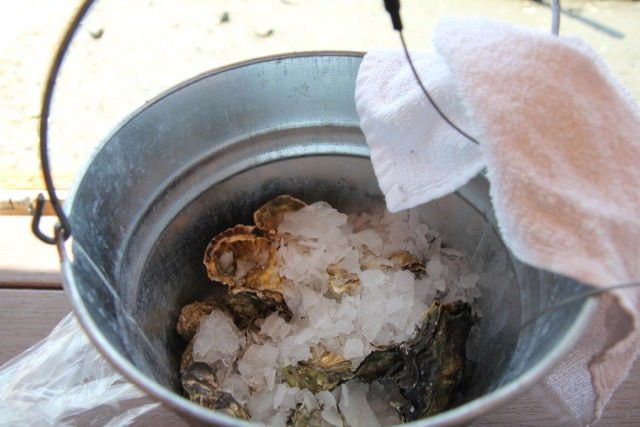 After we shuck them, we chuck them. Really. Into the ground below us.