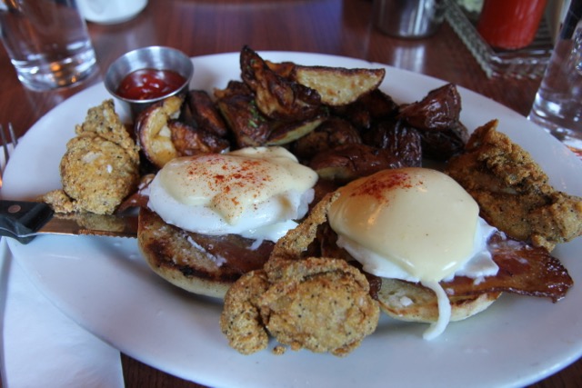 That was the best fried oyster benedict I’ve ever had. I used to think NOLA was great for fried oysters but WOW THESE ARE HUGE! It came with 3 fried oysters and 2 poached eggs on top of bacon and toasted english muffins. It was perfect.