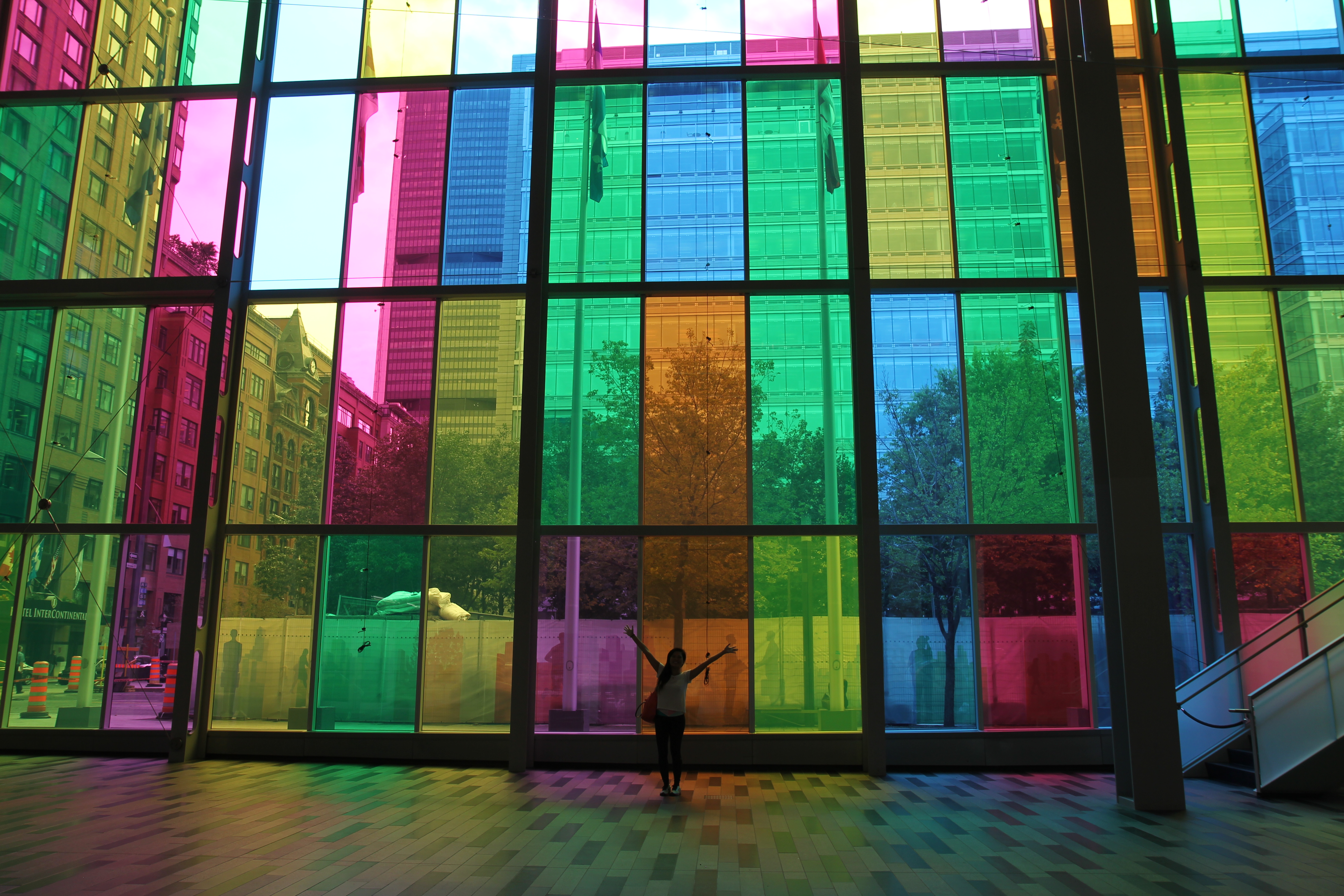 A few blocks down was Quartier des Spectacles, an entertainment district designed as a centre for Montreal’s cultural events and festivals. There was an art installation (limited time, now over) of musical swings titled 21 Balançoires.